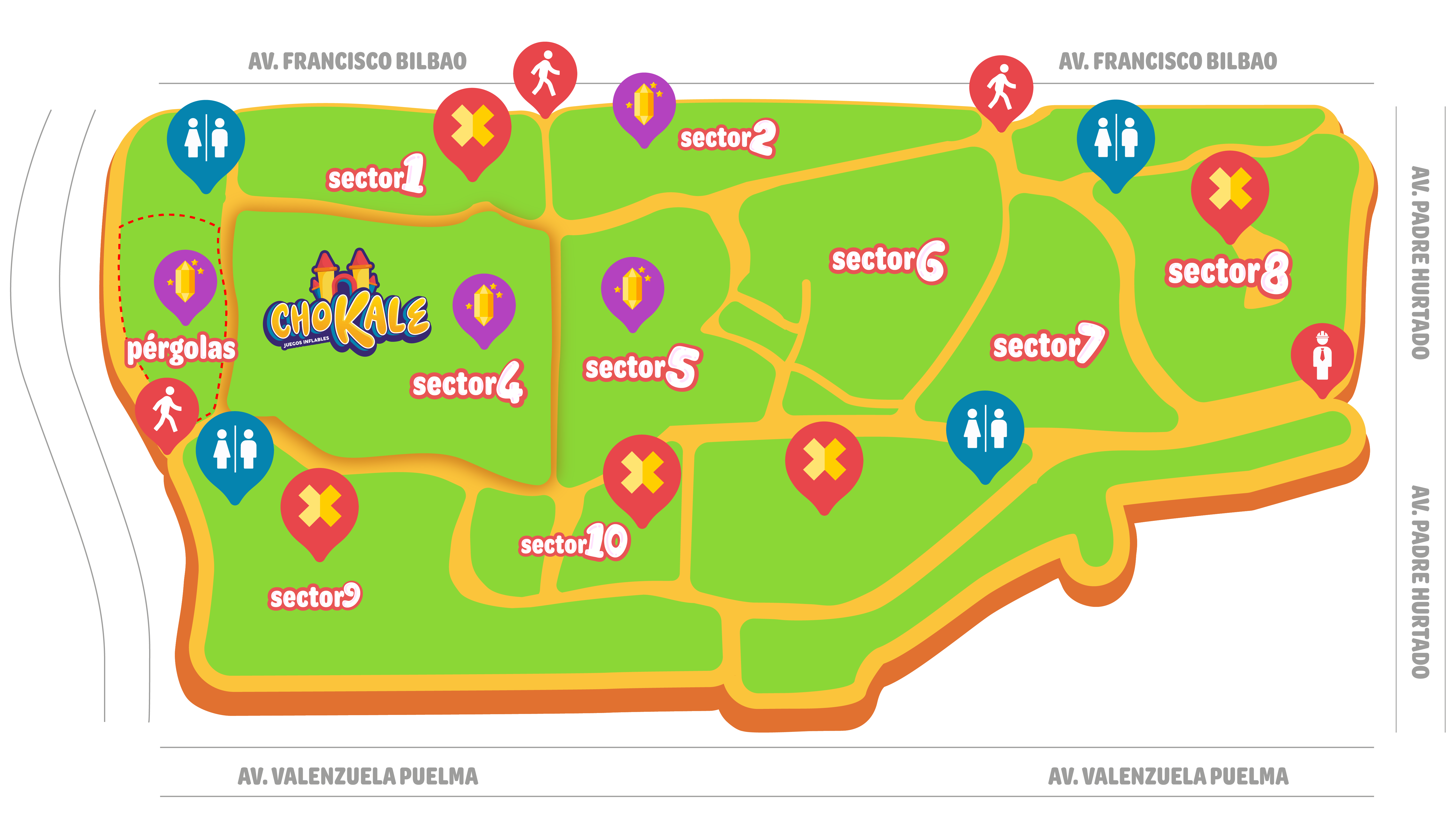 En el mapa de los sectores puede ver la ubicación de los baños.